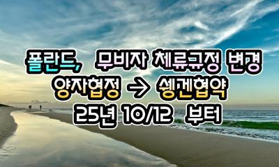 [폴란드] 폴란드, 무비자 체류 관련 규정 변경 ( 양자협정 -> 쉥겐협약 적용 ) - 25년 10/1 현재