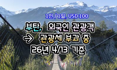 [부탄] 부탄, 외국인 관광객 -> 관광세 ( 1인/1일, USD 100 ) 부과 중 - 26년 4/13 현재