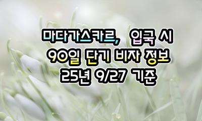 [마다가스카르] 마다가스카르, 입국 시 단기비자 ( 90일 체류 ) 정보 - 25년 9/27 현재