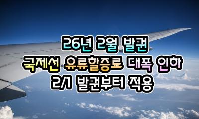 [KE] 2026년 2월 발권 국제선 유류할증료 안내 ( 26년 2/1 발권부터 적용 ) - 26년 1/16 현재