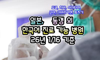 [일본] 동경 (도쿄)/치바/사이타마/군마/이바라기/토치기, 한국어 진료 가능 병원 - 26년 1/16 현재
