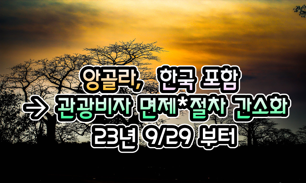 [앙골라] 앙골라, 입국비자 정책 변경 - 관광비자 면제 및 절차 간소화 ( 23년 9/29 부터 ) - 23년 10/4 현재