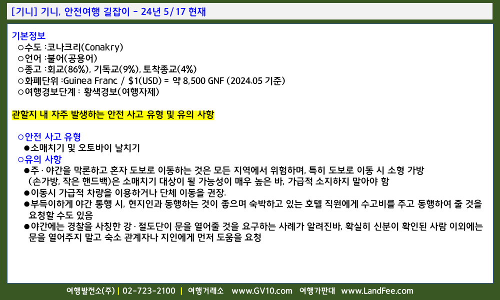 [기니] 기니, 안전여행 길잡이 - 24년 5/17 현재
