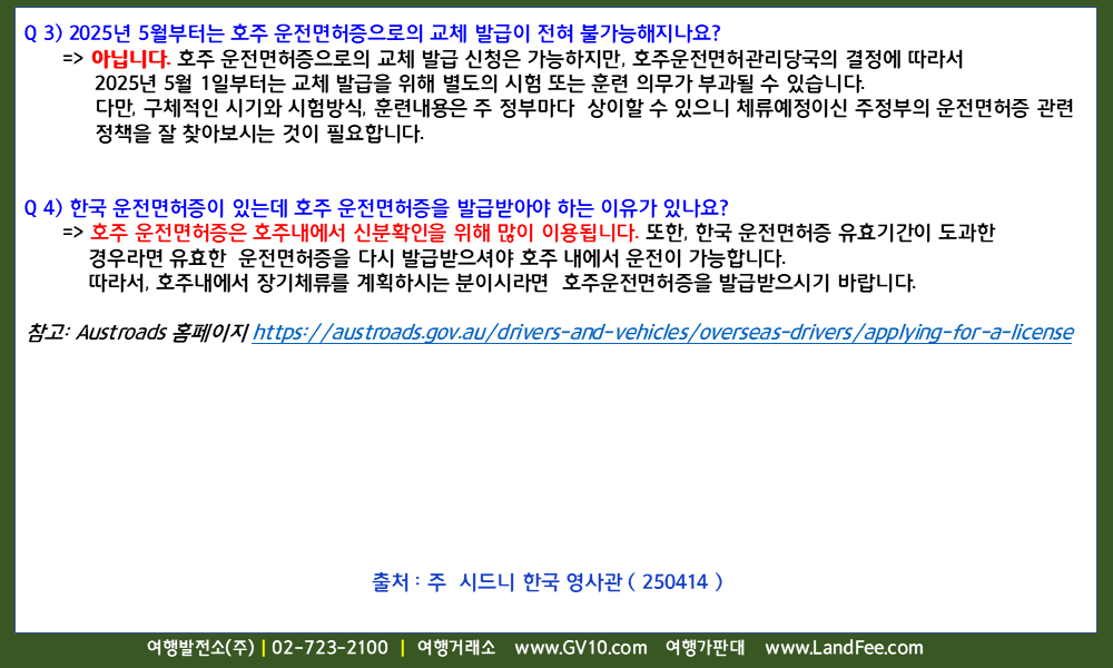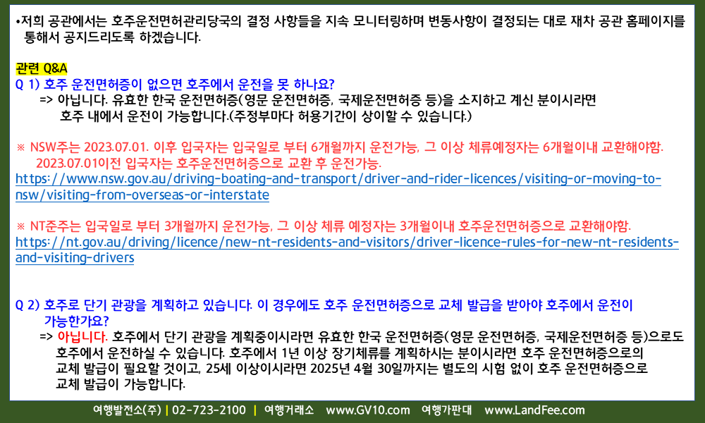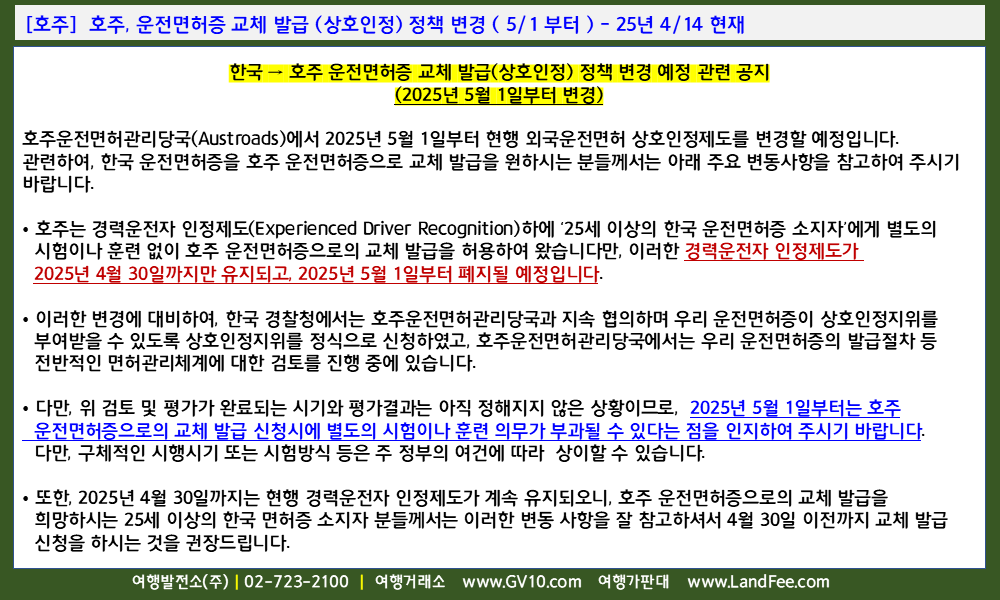 [호주] 호주, 운전면허증 교체 발급 (상호인정) 정책 변경 ( 5/1 부터 ) - 25년 4/14 현재