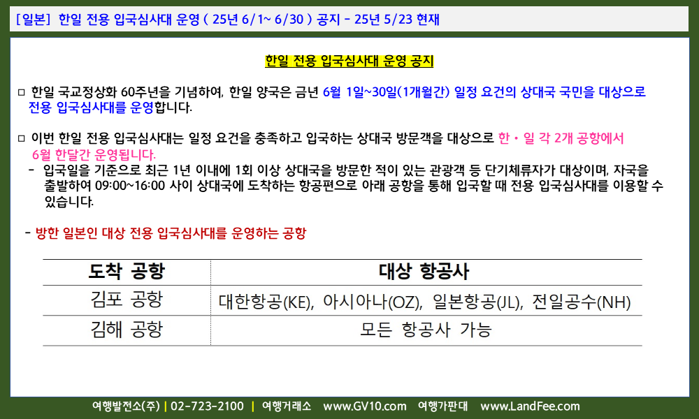 [일본] 한일 전용 입국심사대 운영 ( 25년 6/1~ 6/30 ) 공지 - 25년 5/23 현재