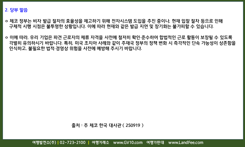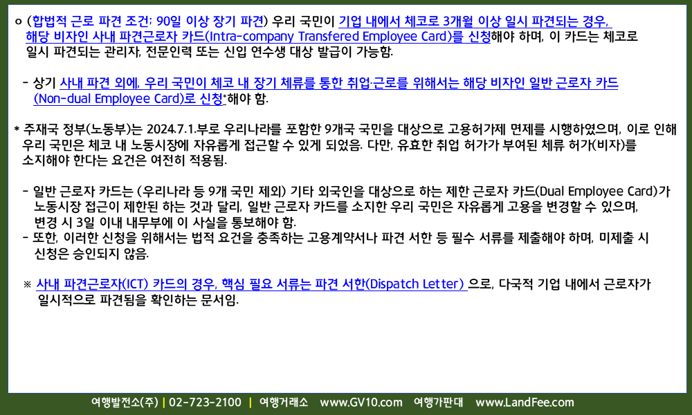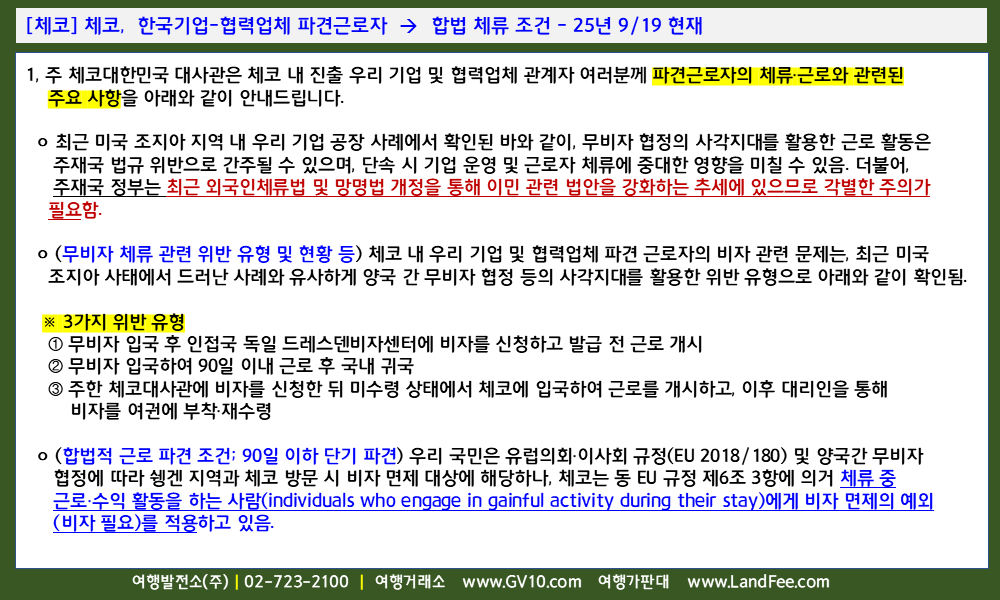 [체코] 체코, 한국기업-협력업체 파견근로자 -> 합법 체류 조건 - 25년 9/19 현재