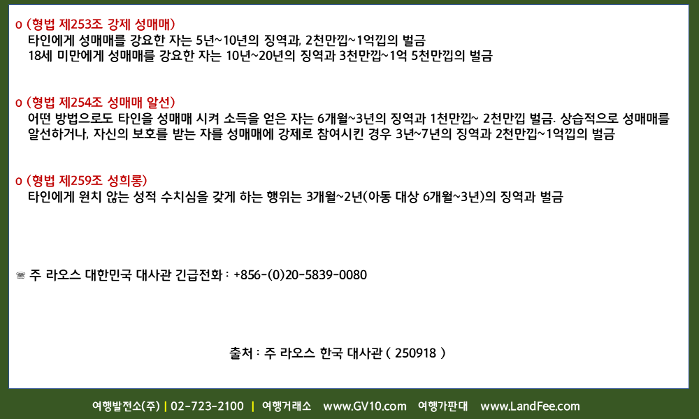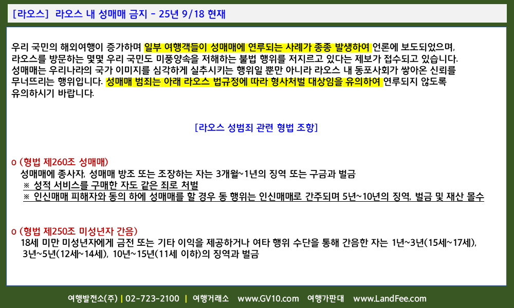 [라오스] 라오스 내 성매매 금지 - 25년 9/18 현재