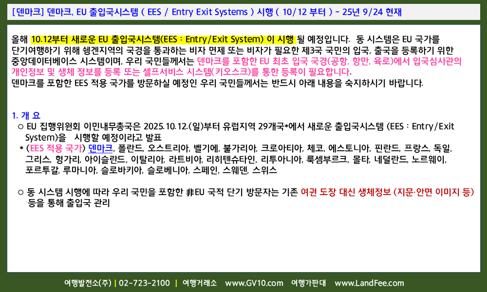 [덴마크] 덴마크, EU 출입국시스템 ( EES / Entry Exit Systems ) 시행 ( 10/12 부터 ) - 25년 9/24 현재