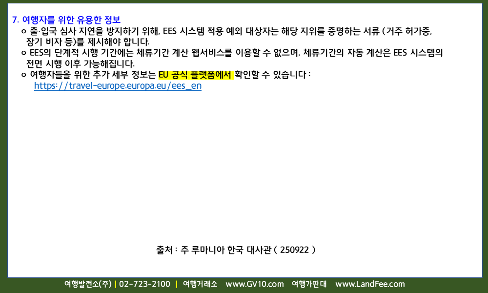 [루마니아] 루마니아, EU 출입국관리 시스템 ( EES ) 시행 ( 10/12 부터 ) - 25년 9/22 현재