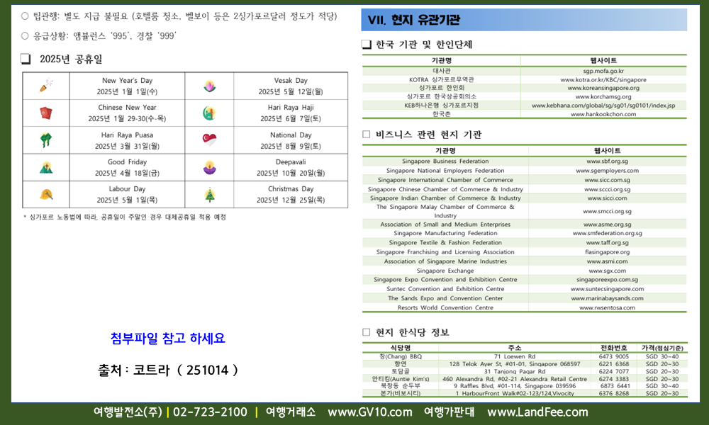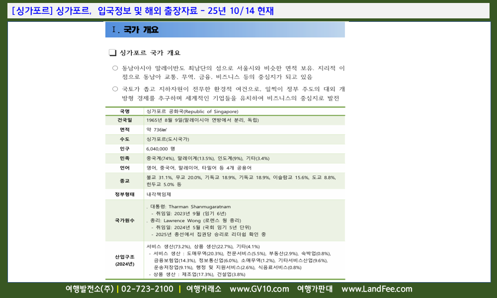 [싱가포르] 싱가포르, 입국정보 및 해외 출장자료 - 25년 10/14 현재