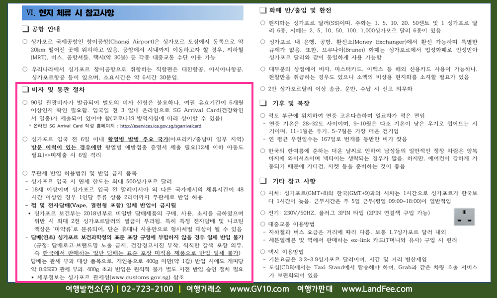 아시아 > 싱가포르 > 싱가포르 > 출입국정보