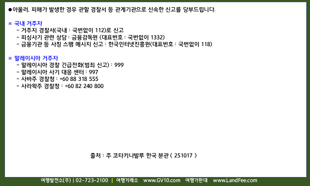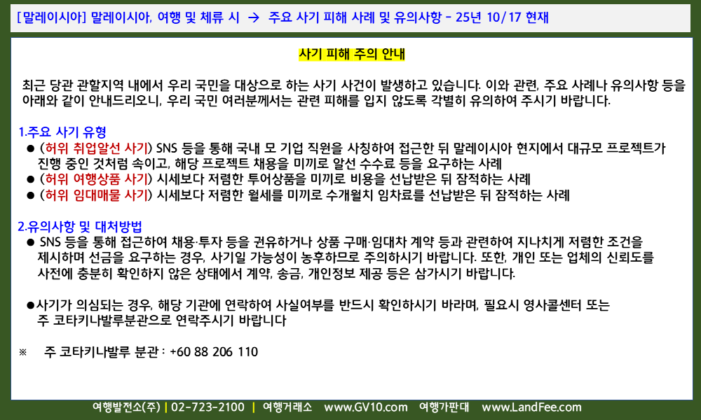 [말레이시아] 말레이시아, 여행 및 체류 시 -> 주요 사기 피해 사례 및 유의사항 - 25년 10/17 현재