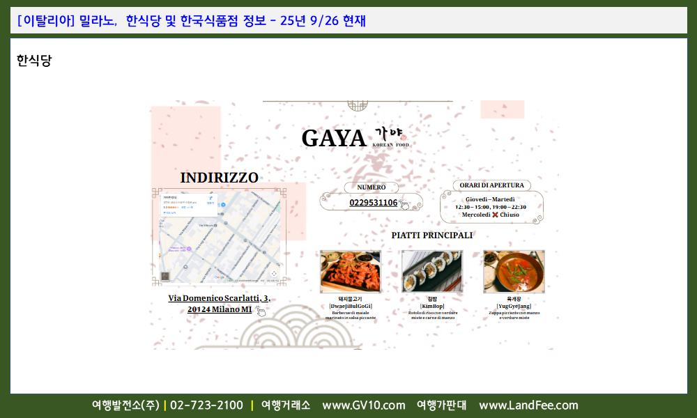 [이탈리아] 밀라노, 한식당 및 한국식품점 정보 - 25년 9/26 현재