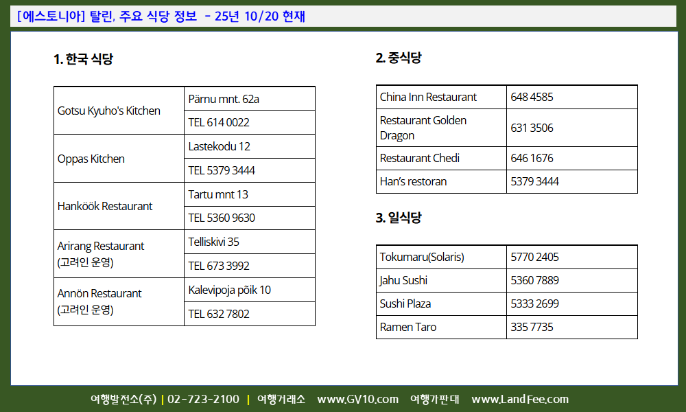 [에스토니아] 탈린, 주요 식당 정보 - 25년 10/20 현재