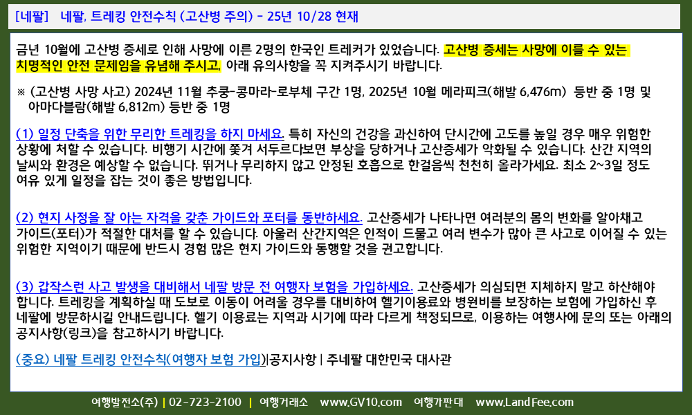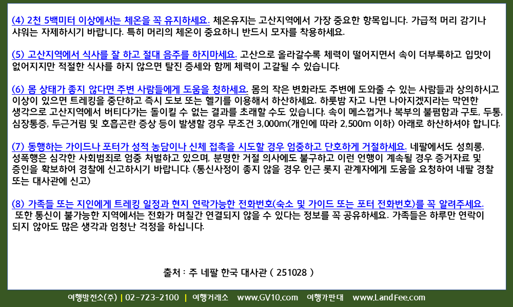 [네팔] 네팔, 트레킹 안전수칙 ( 고산병 주의 ) - 25년 10/28 현재