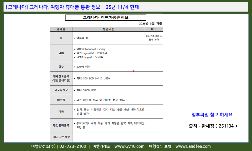 [그레나다] 그레나다, 여행자 휴대품 통관 정보 - 25년 11/4 현재