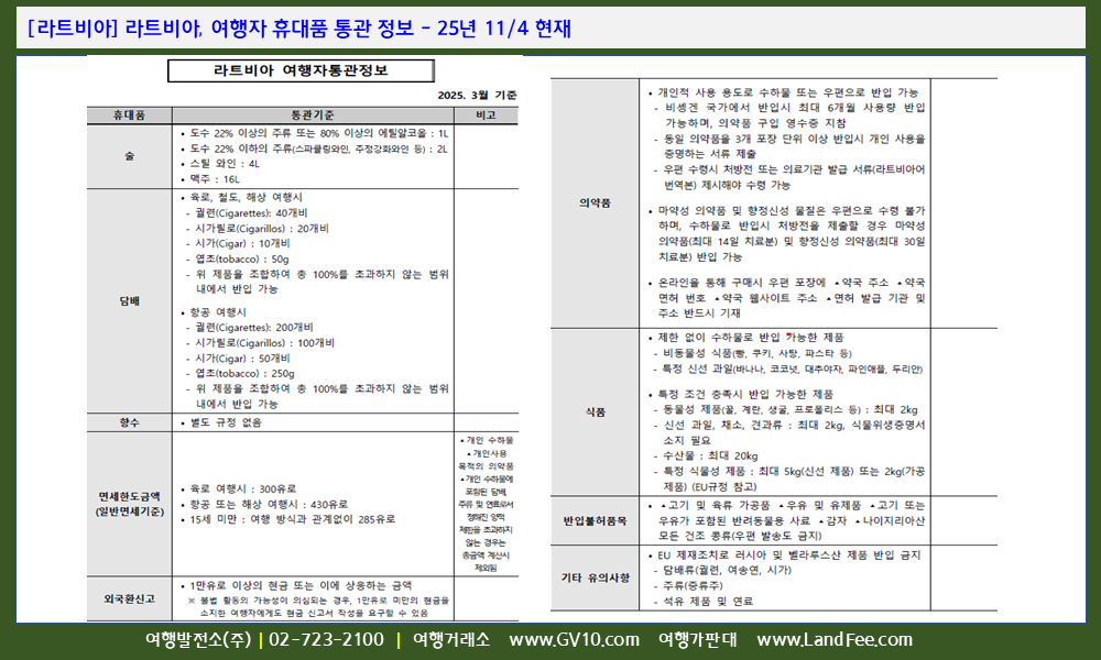 [라트비아] 라트비아, 여행자 휴대품 통관 정보 - 25년 11/4 현재