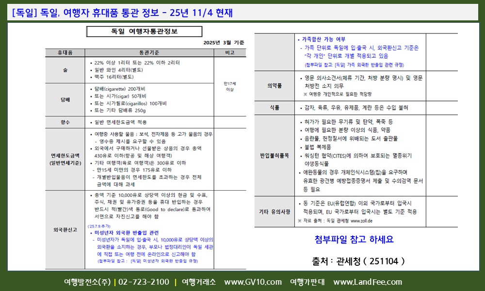 [독일] 독일, 여행자 휴대품 통관 정보 - 25년 11/4 현재