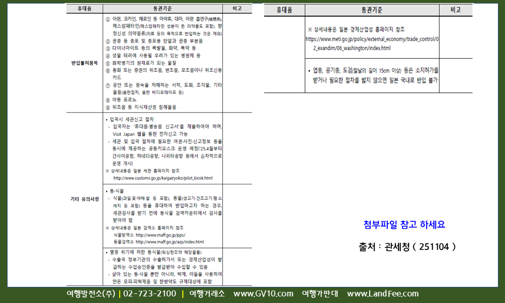 [일본] 일본, 여행자 휴대품 통관 정보 - 25년 11/4 현재