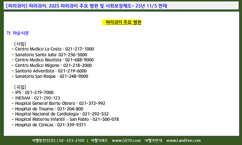 [파라과이] 파라과이, 2025 파라과이 주요 병원 및 사회보장제도- 25년 11/5 현재