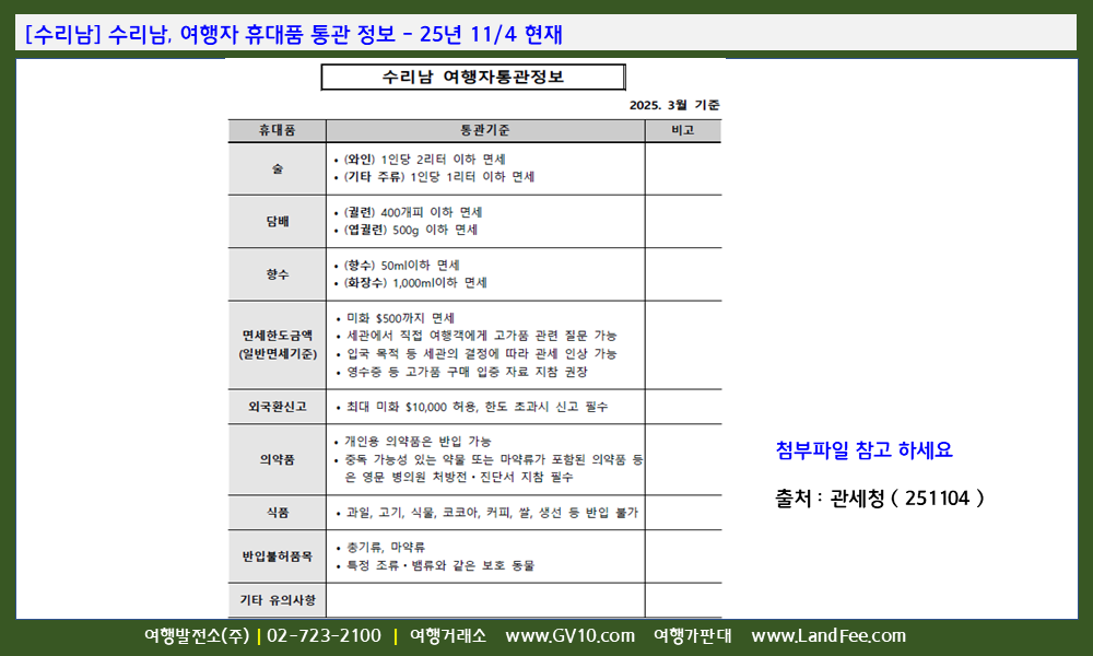 [수리남] 수리남, 여행자 휴대품 통관 정보 - 25년 11/4 현재