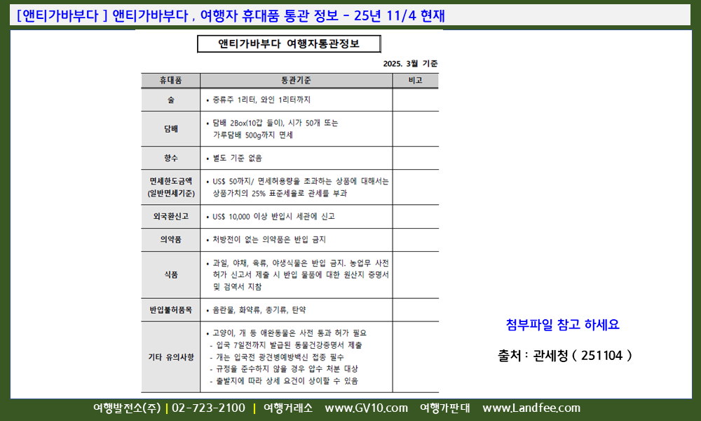 [앤티가바부다 ] 앤티가바부다 , 여행자 휴대품 통관 정보 - 25년 11/4 현재