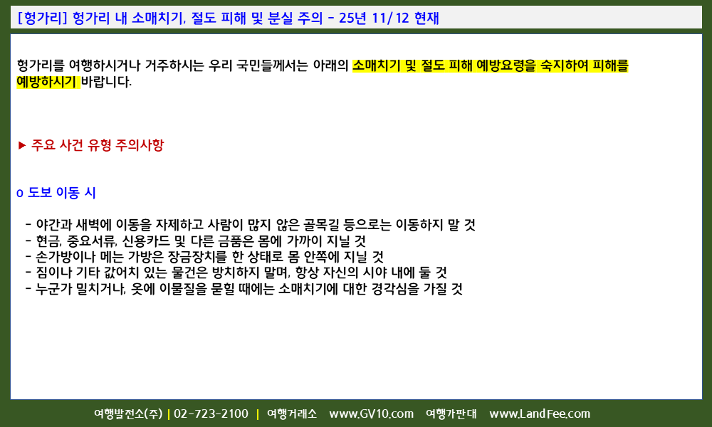 [헝가리] 헝가리 내 소매치기, 절도 피해 및 분실 주의 - 25년 11/12 현재