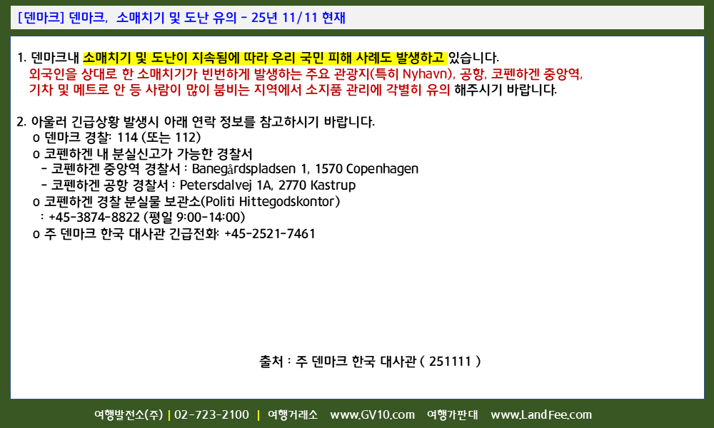 [덴마크] 덴마크, 소매치기 및 도난 유의 - 25년 11/11 현재