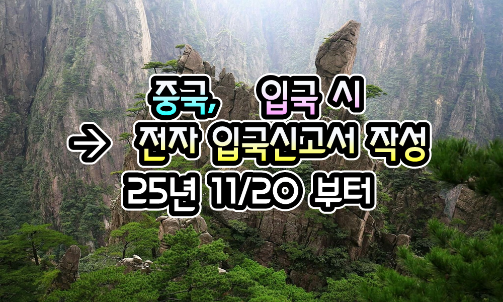 중국] 중국, 입국 시 -> 전자 입국 신고서 ( Electronic Arrival Card ) 시행 ( 11/20 부터 ) - 25년 11/14 현재