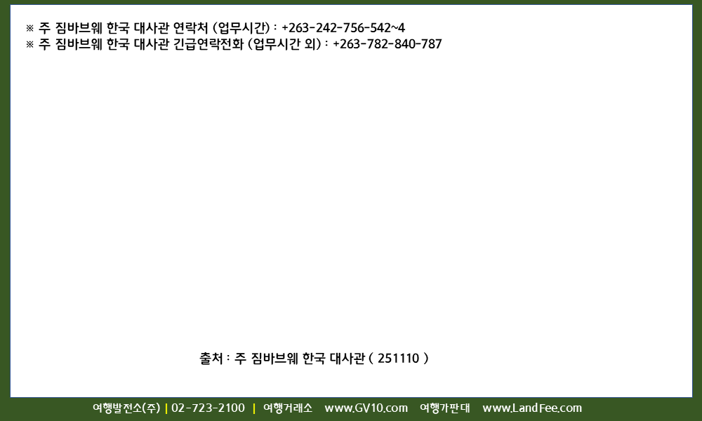 [짐바브웨] 짐바브웨, 한국민 -> 도난, 소매치기 등 피해 사례 증가 - 25년 11/10 현재