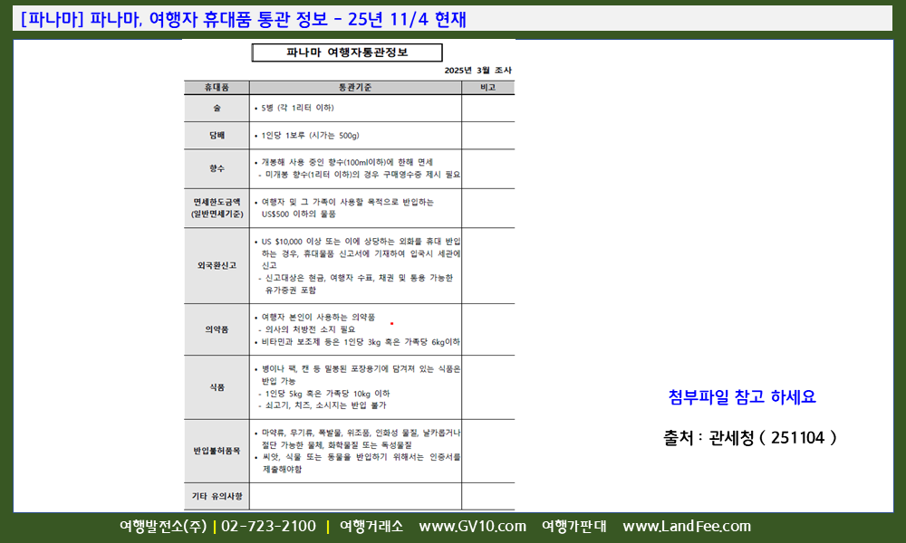 [파나마] 파나마, 여행자 휴대품 통관 정보 - 25년 11/4 현재