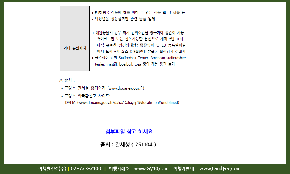 [프랑스] 프랑스, 여행자 휴대품 통관 정보 - 25년 11/4 현재