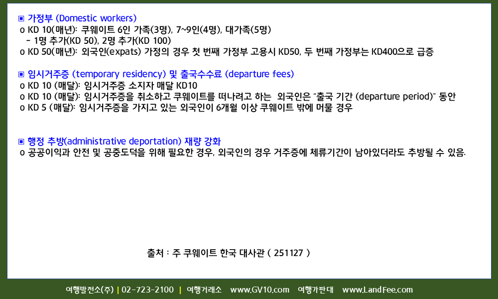 [쿠웨이트] 쿠웨이트, 거주 및 방문 비자 수수료 인상 ( 12/23 부터 ) - 25년 11/27 현재