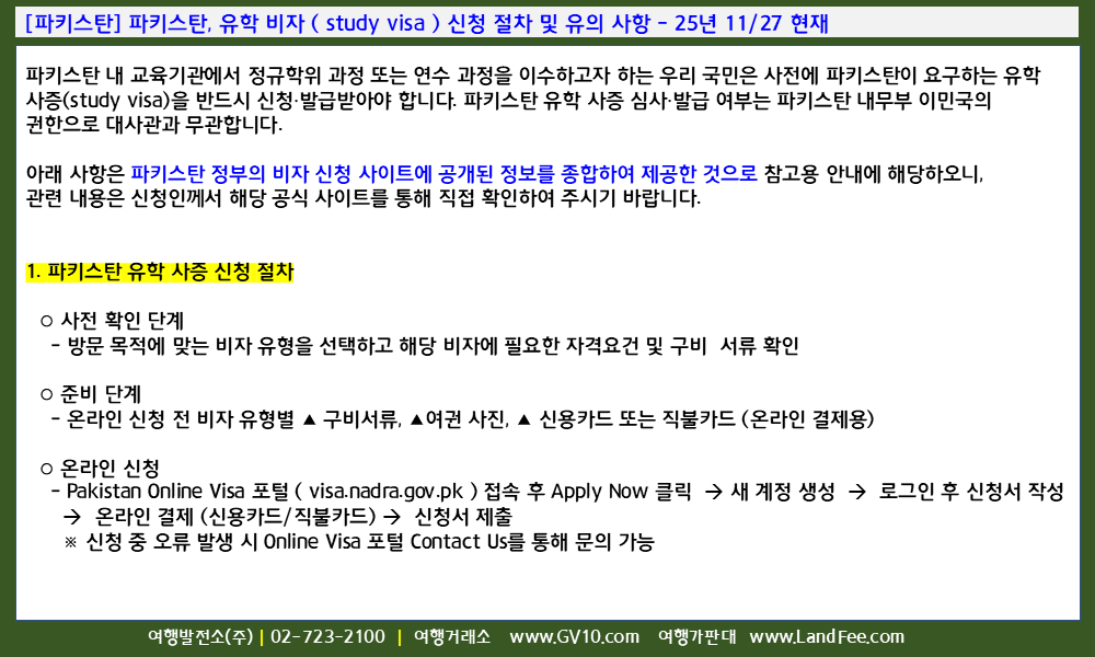 [파키스탄] 파키스탄, 유학 비자 ( study visa ) 신청 절차 및 유의 사항 - 25년 11/27 현재