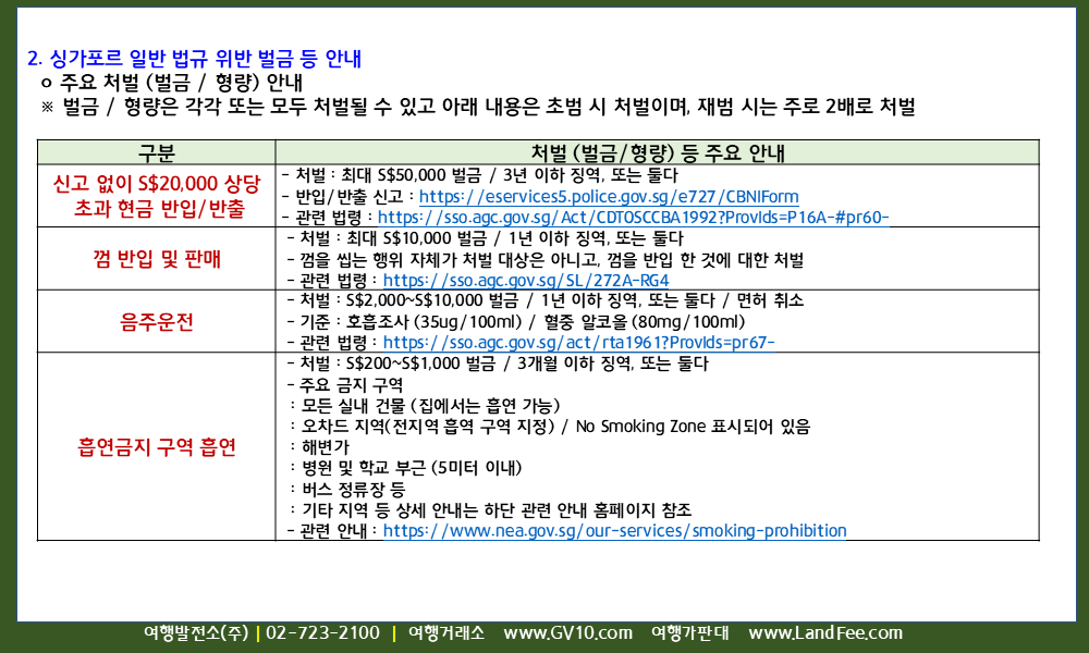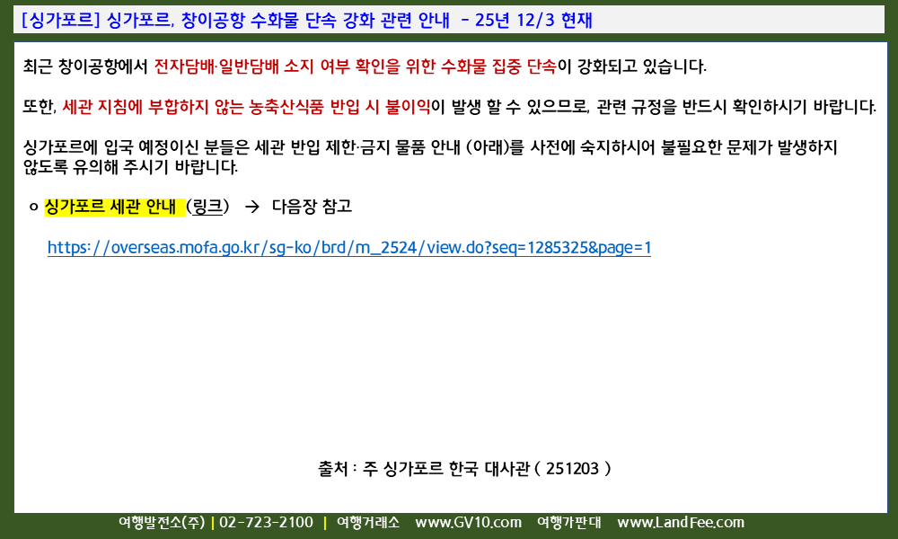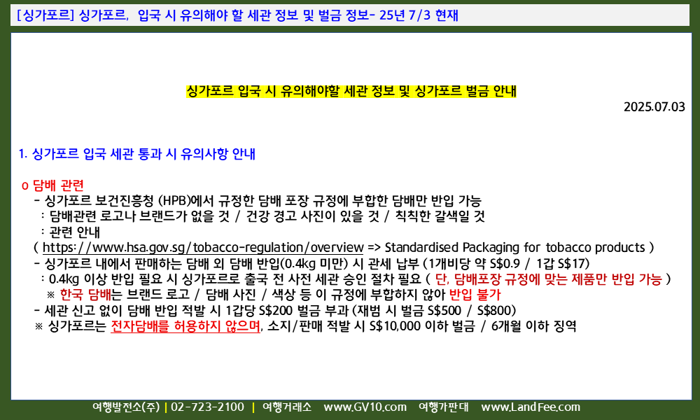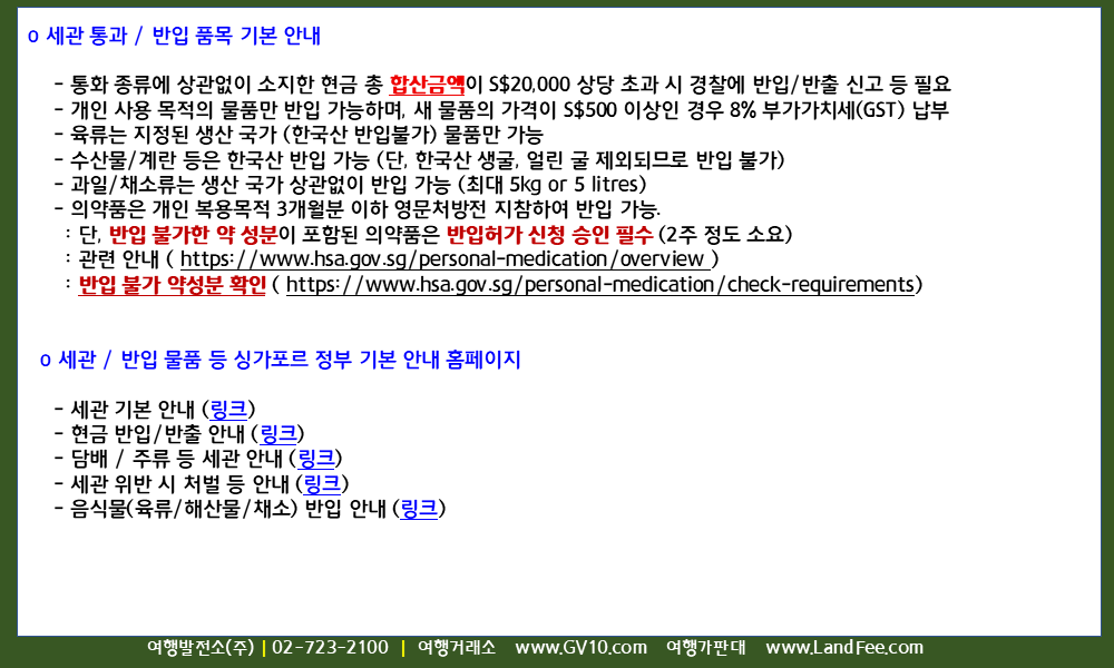 싱가포르 세관 안내