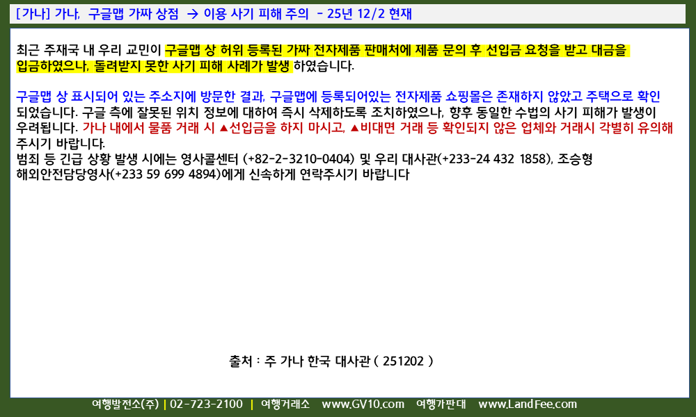 [가나] 가나, 구글맵 가짜 상점 -> 이용 사기 피해 주의 - 25년 12/2 현재
