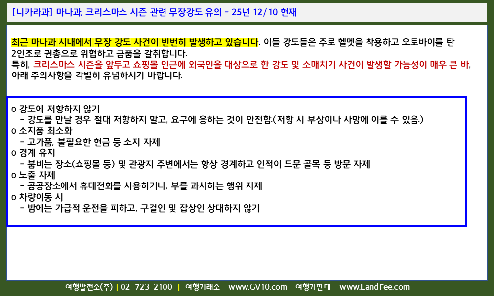 [니카라과] 마나과, 크리스마스 시즌 관련 무장강도 유의 - 25년 12/10 현재