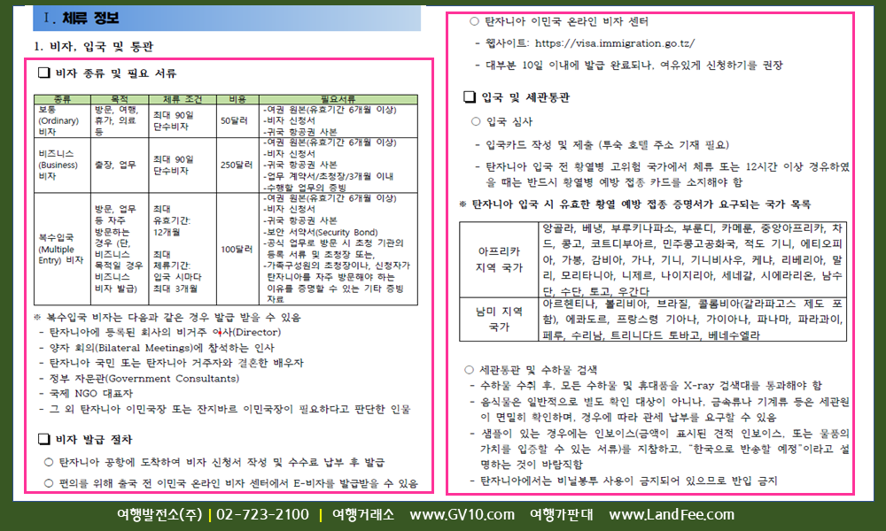 아프리카 > 탄자니아 > 다레살람 > 출입국정보