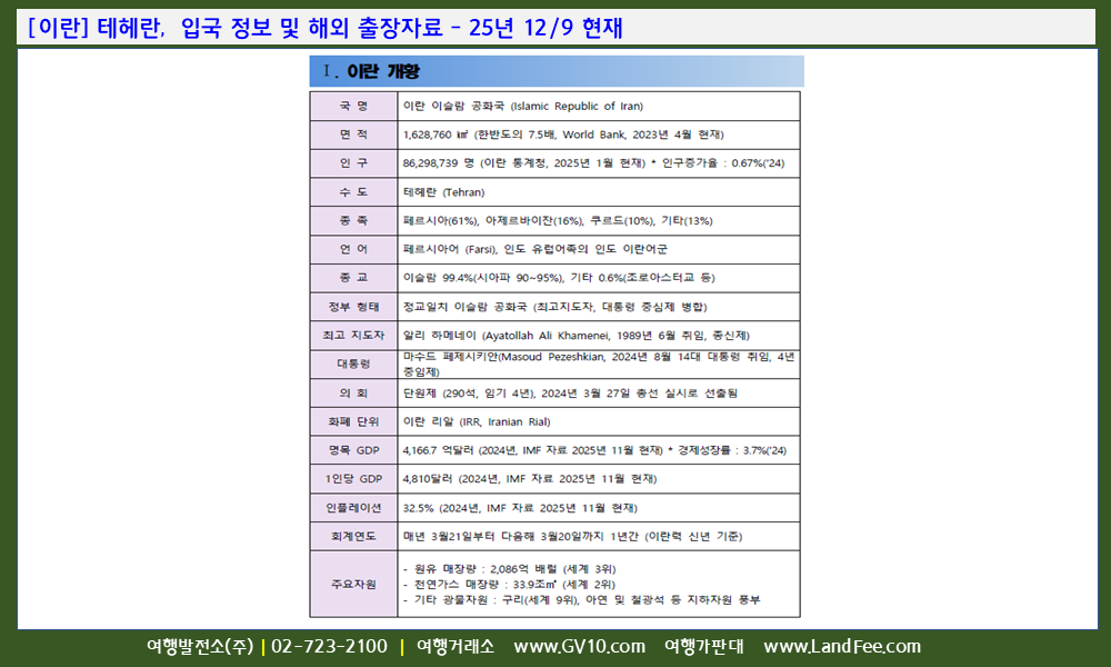 [이란] 테헤란, 입국 정보 및 해외 출장자료 - 25년 12/9 현재
