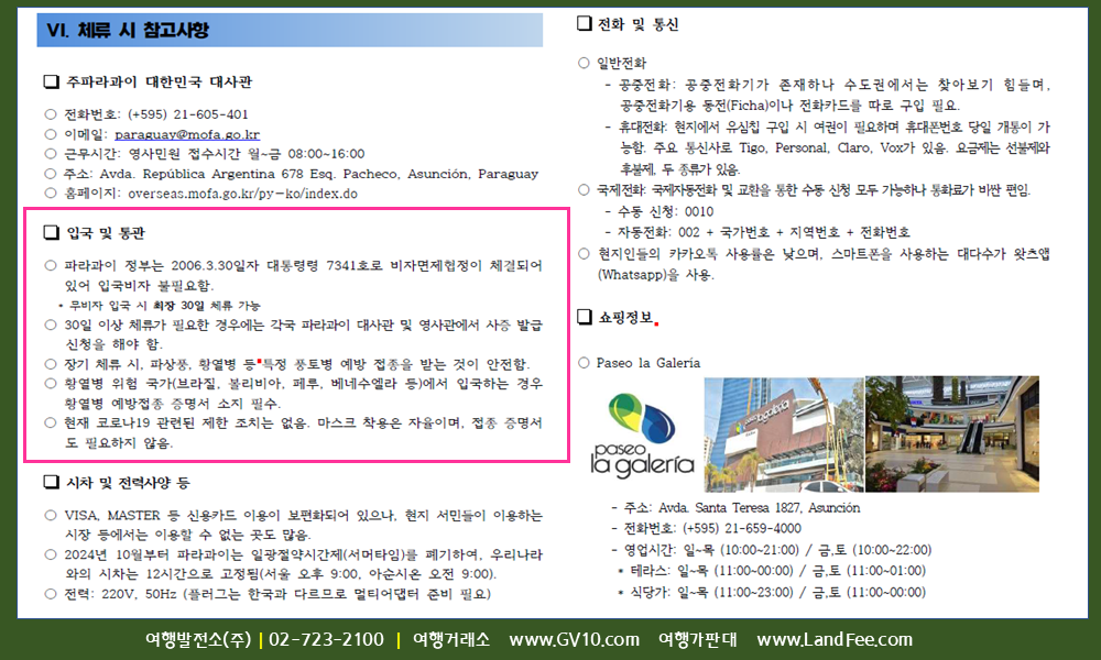[파라과이] 아순시온, 입국 정보 및 해외 출장자료 - 25년 12/9 현재