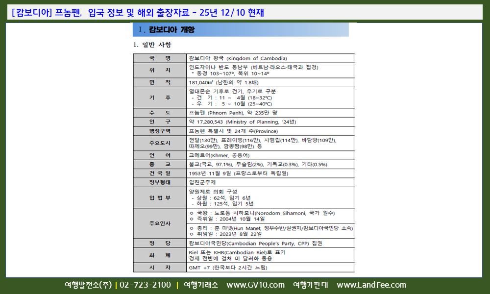 [캄보디아] 프놈펜, 입국 정보 및 해외 출장자료 - 25년 12/10 현재