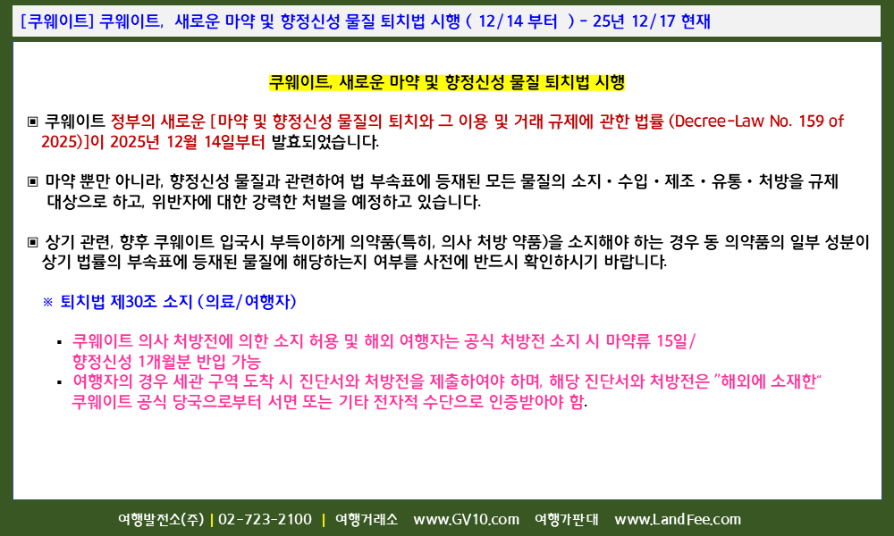 [쿠웨이트] 쿠웨이트, 새로운 마약 및 향정신성 물질 퇴치법 시행 ( 12/14 부터 ) - 25년 12/17 현재