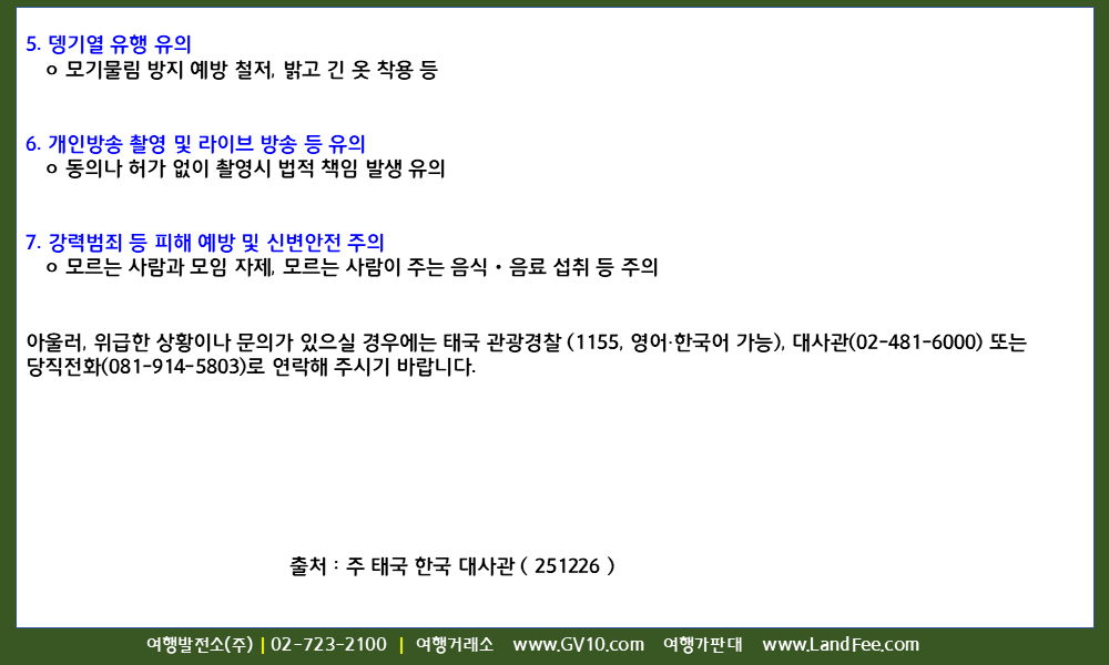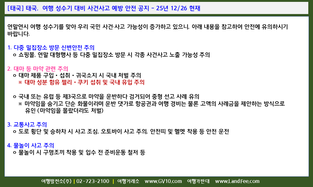 [태국] 태국, 여행 성수기 대비 사건사고 예방 안전 공지 - 25년 12/26 현재