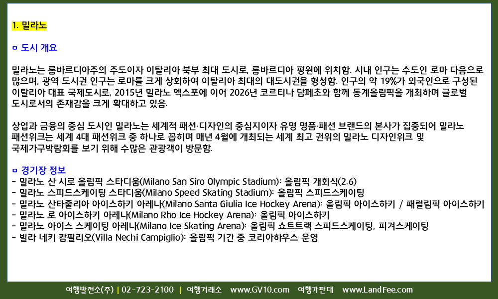 [이탈리아] 2026 밀라노-코르티나 동계 올림픽 및 패럴림픽 개최 도시별 안전 정보 – 25년 12/23 현재