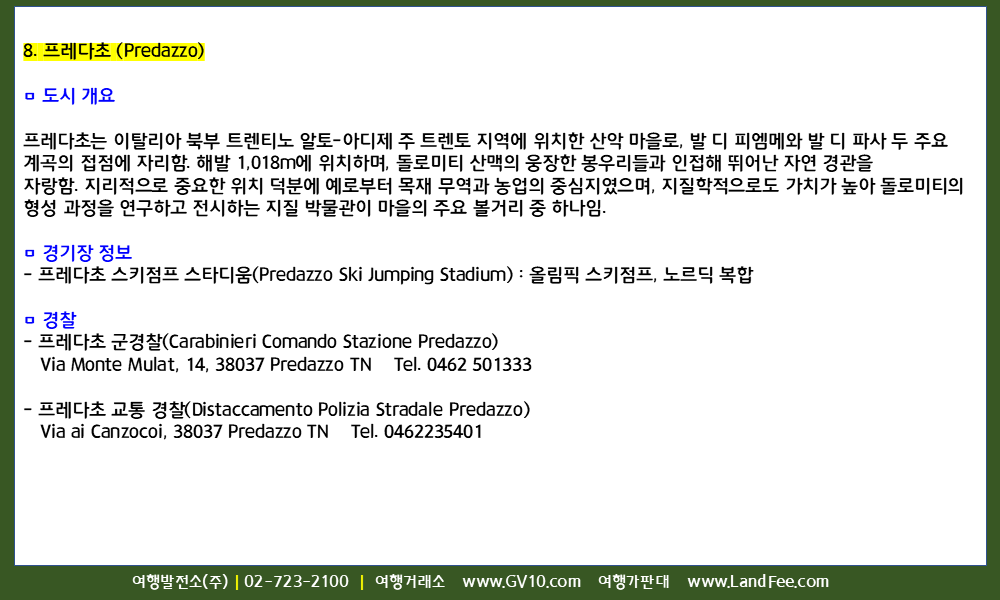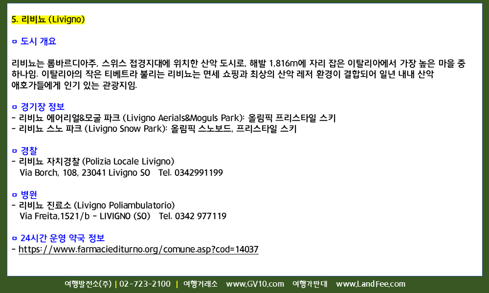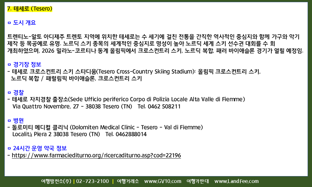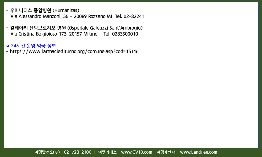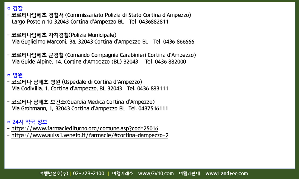 유럽 > 이탈리아 > 밀라노/베로나/코르티나담페초/안테르셀바/리비뇨/보르미오/테세로/프레타초 > 현지정보