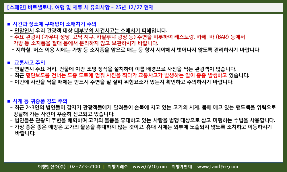 [스페인] 바르셀로나, 여행 및 체류 시 유의사항 - 25년 12/27 현재