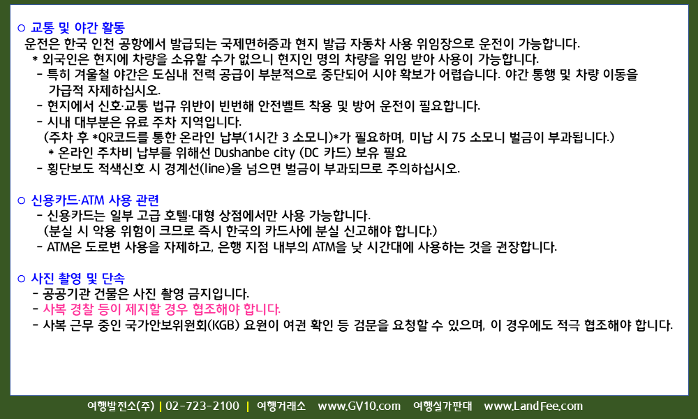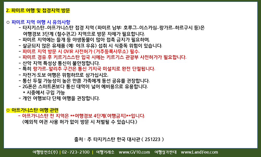 [타지키스탄] 타지키스탄, 입국정보 및 여행·체류 시 유의사항 - 25년 12/23 현재