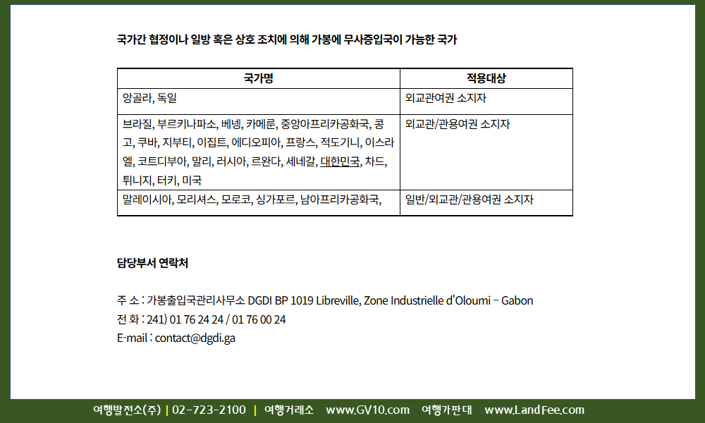 아프리카 > 가봉 > 리브르빌 > 출입국정보