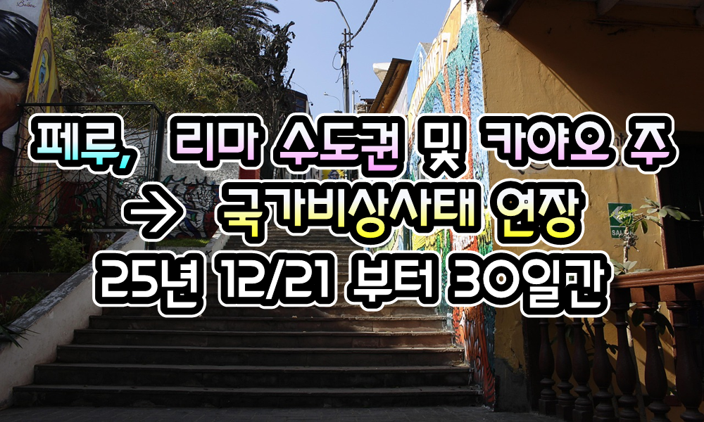 [페루] 리마 수도권 및 카야오 주 -> 국가비상사태 선포 연장 ( 12/21 부터 30일간 ) - 25년 12/21 현재
