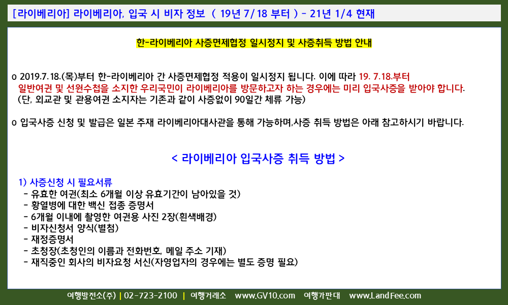 [라이베리아] 라이베리아, 입국 시 비자 정보 ( 19년 7/18 부터 ) - 21년 1/4 현재